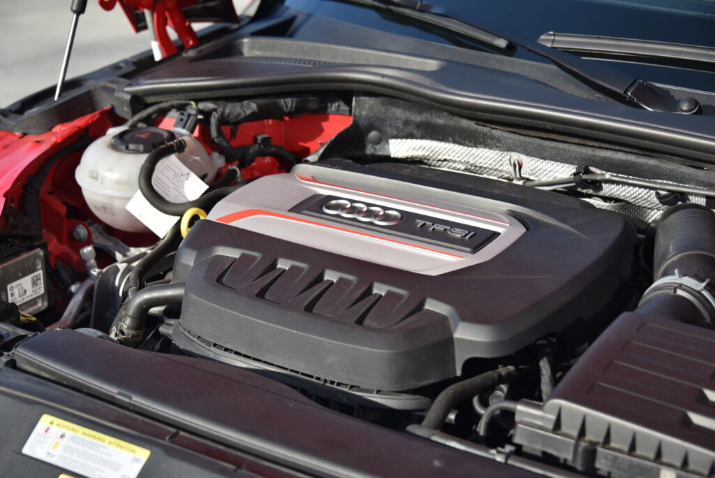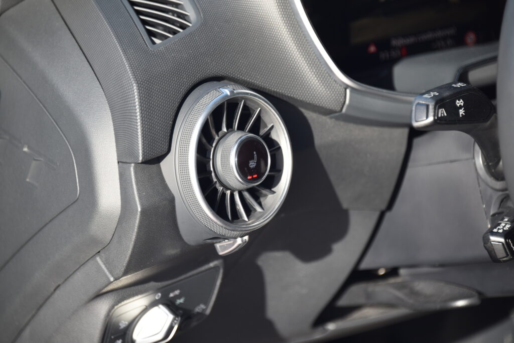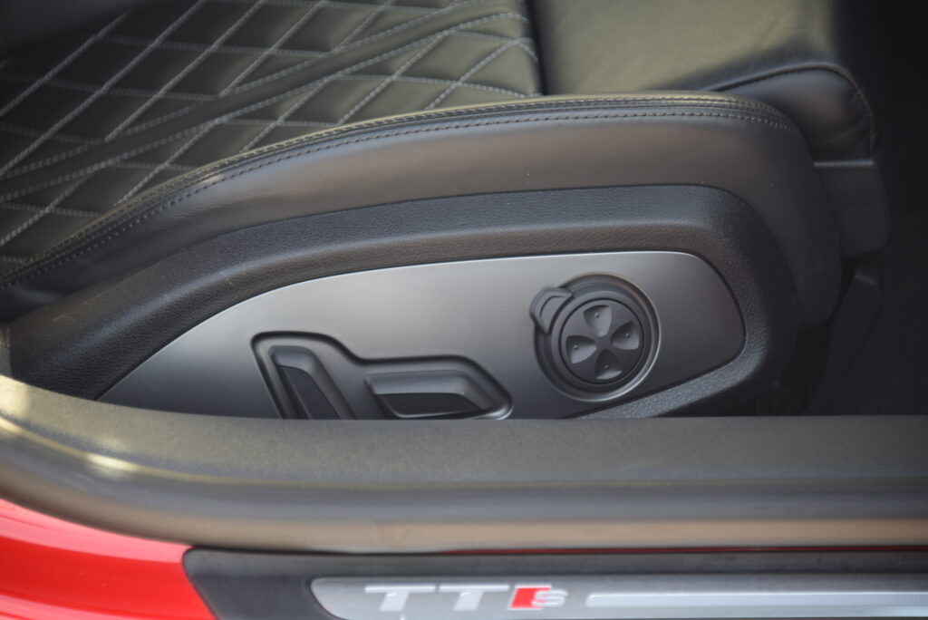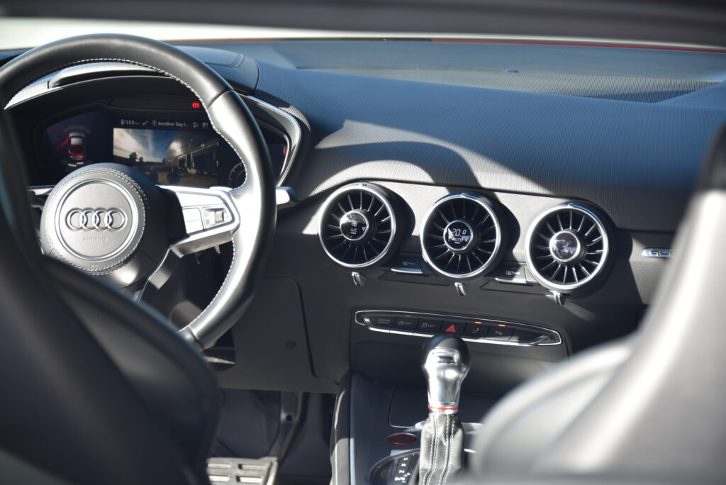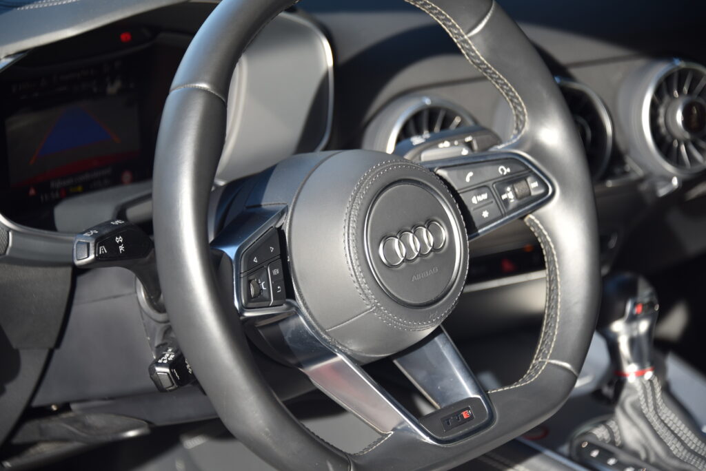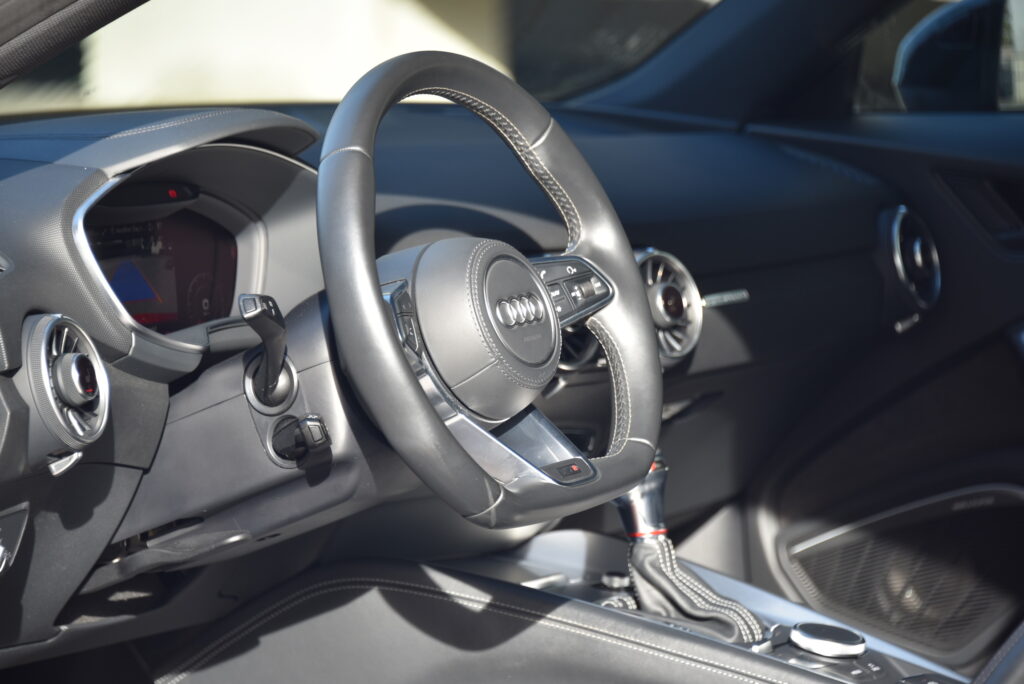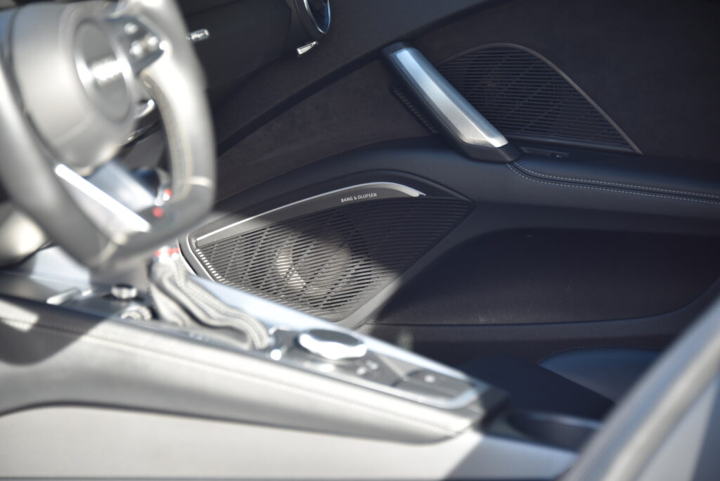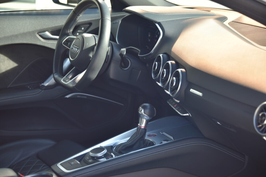 Binnenin is de TTS een toonbeeld van modern vakmanschap. Sportstoelen in leder met diamond stitching omarmen bestuurder en passagier, terwijl de Virtual Cockpit en het Bang & Olufsen sound system zorgen voor een omgeving waarin technologie en emotie samensmelten. Elk detail is ontworpen om te raken – van de afwerking van het interieur tot de intuïtieve bediening.